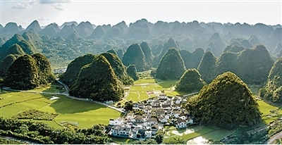 上万座锥状峰丛在田园间拔地而起,纳灰河如银链串起布依族青瓦村寨。游客可乘观光车前往景区观景平台俯瞰全景,也可骑行深入峰林,近距离感受田园与峰林交织的美景。暑假期间,上纳灰村推出“稻田抓鱼”项目,是亲子游的绝佳选择。