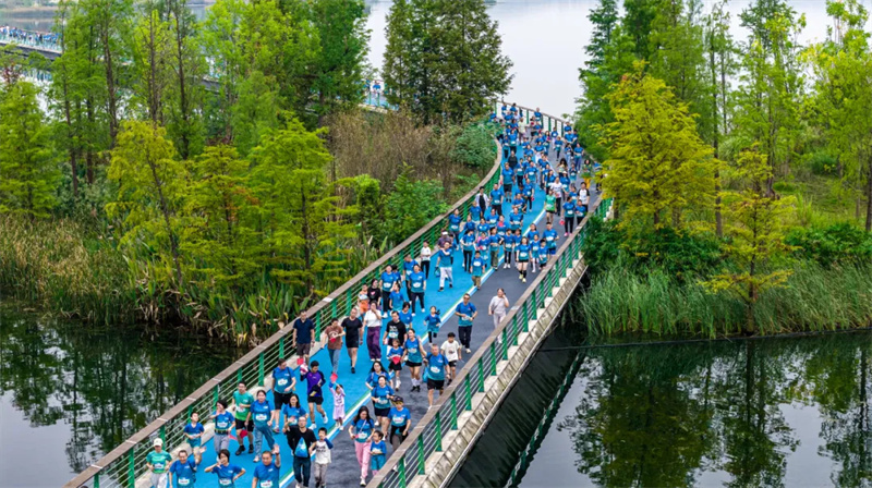 这场环湖跑,不仅是一场全民参与的体育盛会,更像一扇窗口——透过奔跑的身影、欢笑的人群与科技的互动,人们清晰地看到天府新区正从绿道上的奔跑,向着人才向上、产业向新的高质量发展目标加速迈进,一幅“公园城市里的新发展图景”在湖光山色间徐徐展开。