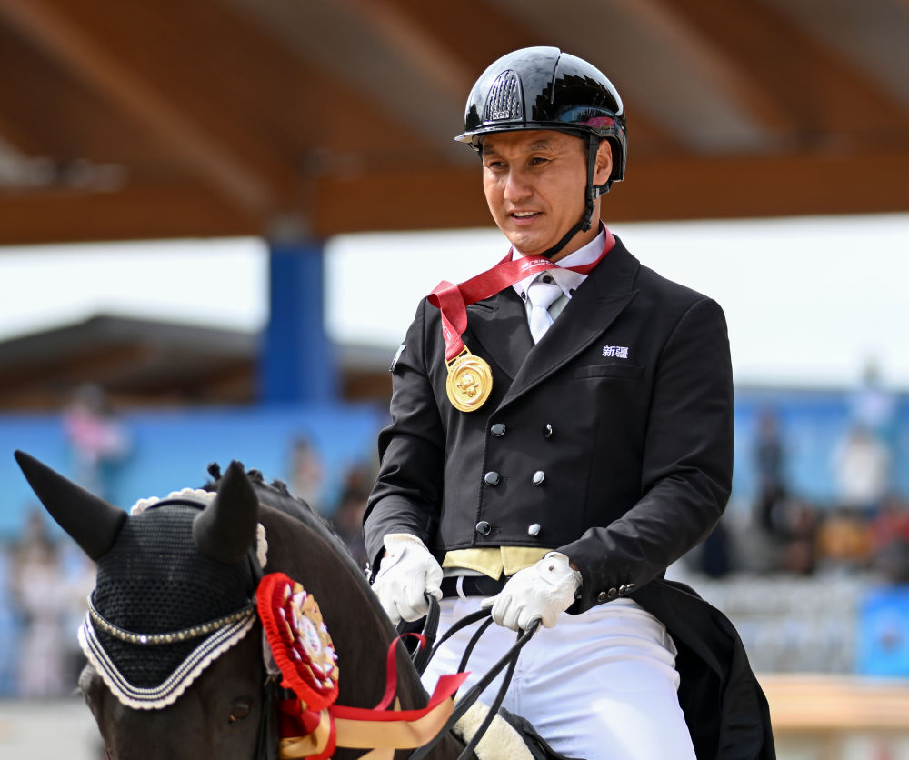 ——全运会马术比赛颁奖仪式结束后,获奖骑手会骑马绕场一周,接受观众祝贺。此时,不仅骑手胸前闪耀着奖牌,马的左耳旁也别着一朵精致的“马花”,上面清晰地标注着比赛项目与名次。