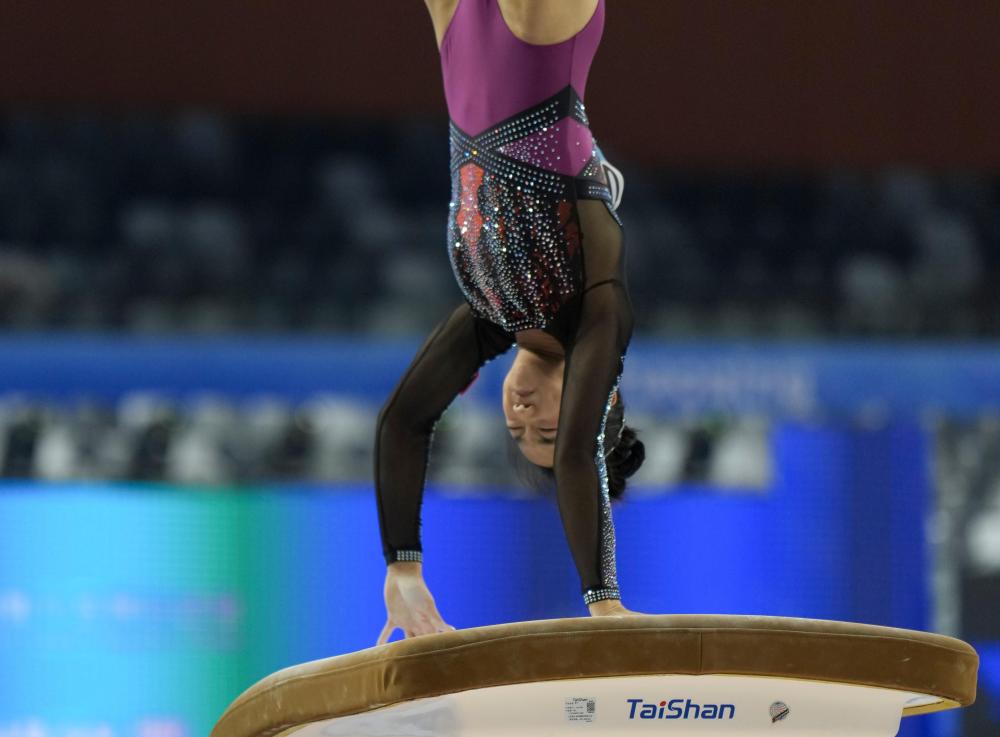 11月16日,香港队选手曾凯缘在女子跳马决赛中。新华社记者 胥冰洁 摄