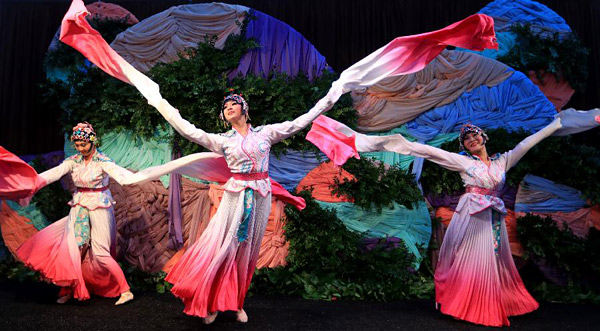 9月23日,在美国科斯塔梅萨南岸广场,演员在中秋游园会上表演。美国西部最大购物中心南岸广场当日晚举办游园会,庆祝中国传统节日中秋节。