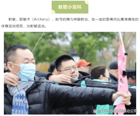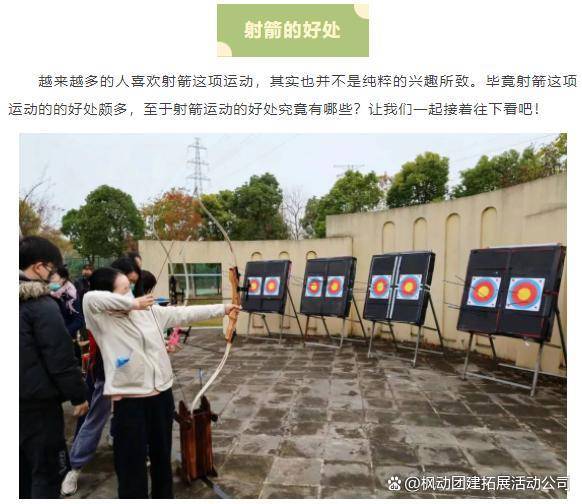 枫动体育为企业工会组织策划户外体育竞技活动赛事 ,户外射箭“趣”拓展!通过户外体育竞技活动赛事,在比赛中享受竞技体育带来的成就感。屏息瞄准,一箭中的,享受射箭运动独有的畅快与满足。转载: