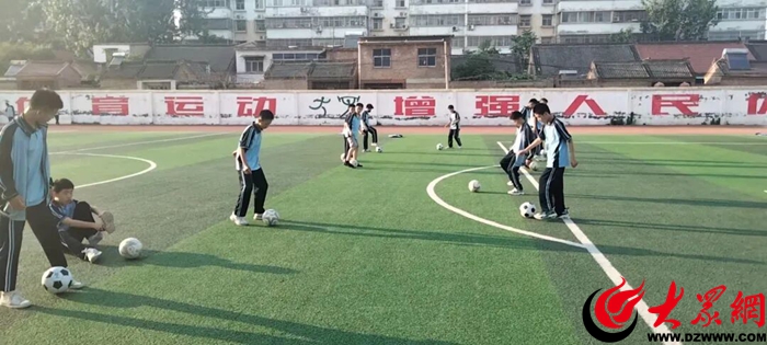 课程筑基,让足球运动融入日常教学。作为深耕特色教育的学校,成武县实验中学充分利用优势资源,将足球纳入校本课程体系,与书法、戏曲、创客教育等特色课程协同发展,构建起“课堂教学+课外训练”的一体化培养模式。学校严格落实国家体育课程标准,保障义务教育阶段足球课时不低于体育课总课时数的1/3,通过趣味化、系统化的教学,让学生掌握足球基本技能,培养运动兴趣。同时,学校依托课外活动时间开展足球特长训练,组建专业训练团队,根据学生身心特点和技能水平实施分层教学,兼顾普及与提高,确保每一位热爱足球的学生都能得到专业指导。