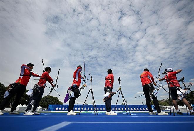 射箭是韩国队的优势项目,男子个人奥运会纪录是韩国选手金优镇在2016年里约奥运会创下的700环。中国队出战男子个人排名赛的是王岩、考文超、李中原,其中,湖北运动员考文超的登场,是13名参加巴黎奥运会的湖北健儿中最早亮相赛场的一位。