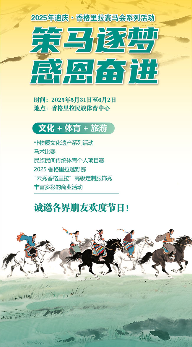 香格里拉赛马文化历史悠久,是当地民俗文化的重要组成部分,承载着民众对美好生活的向往和追求。举办赛马会系列活动,旨在传承和弘扬这一独特的传统文化,推动文化旅游产业深度融合,提升香格里拉的知名度和影响力,为当地经济社会发展注入新活力,同时为广大民众和游客打造一场集体育竞技、文化体验、休闲娱乐于一体的综合性盛会。